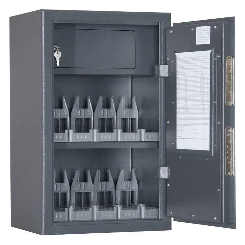 - Сейф рассчитан на размещение десяти единиц ручного оружия на специальных подставках.